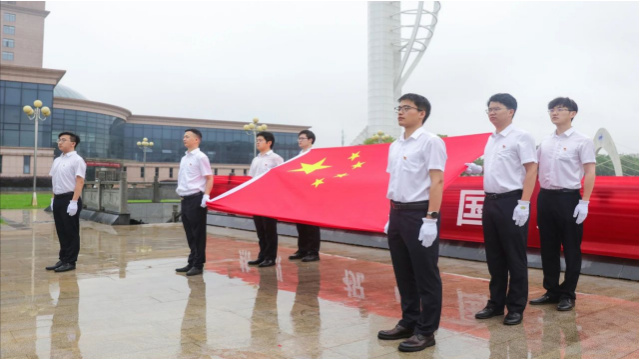 全體干部職工精神煥發,以崇高的敬意,向國旗、向偉大的祖國致敬。