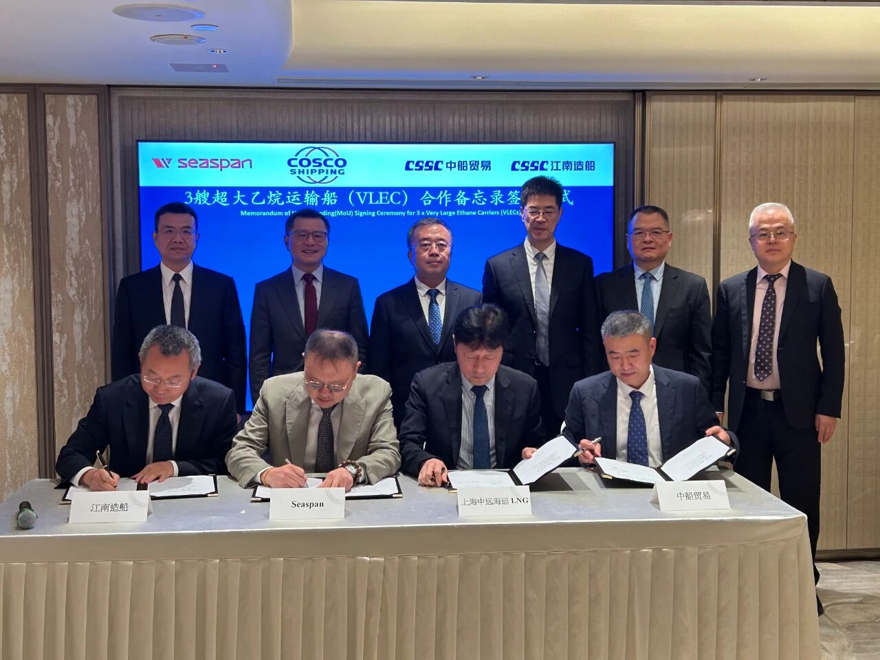 王國強(qiáng)同時(shí)見證了中船集團(tuán)與中旅集團(tuán)簽署戰(zhàn)略合作協(xié)議,中船集團(tuán)旗下江南造船聯(lián)合中船貿(mào)易與Seaspan、上海中遠(yuǎn)海運(yùn)LNG簽署超大乙烷運(yùn)輸船(VLEC)合作備忘錄;與相關(guān)中央企業(yè)舉行會(huì)談并簽署戰(zhàn)略合作協(xié)議。