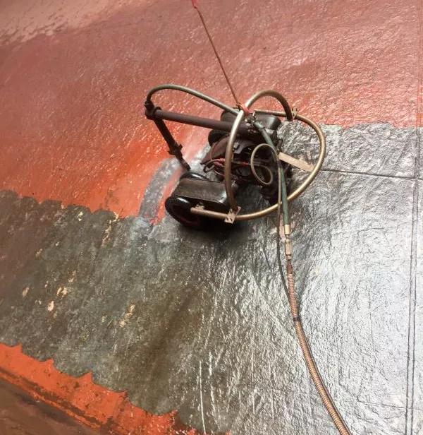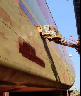 2020年,公司在水霧噴砂基礎上引進了8套超高壓水除銹設備,并通過引進技術自主研發爬壁機器人,進一步壓減修船除銹粉塵的產生量,從根源上解決了船舶除銹帶來的揚塵問題。