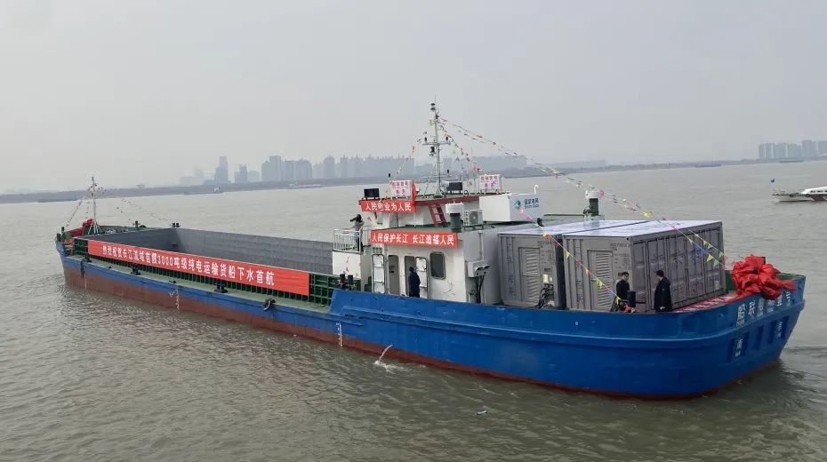 “船聯(lián)1號(hào)”由國(guó)網(wǎng)江蘇省電力有限公司聯(lián)合相關(guān)部門和企業(yè)共同打造,是長(zhǎng)江流域最大載重噸位的電動(dòng)貨船,將電能作為整艘船的唯一能源,實(shí)現(xiàn)零排放、低噪音、無污染。