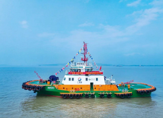 近日,由中船集團六〇五院設計的華南地區首艘純電拖輪“穗港電拖01”號在廣州港交付。該船將重點服務于廣州核心港區,承擔船舶拖帶、靠離泊及護航等海上作業,助力廣州港打造“零碳港口”。